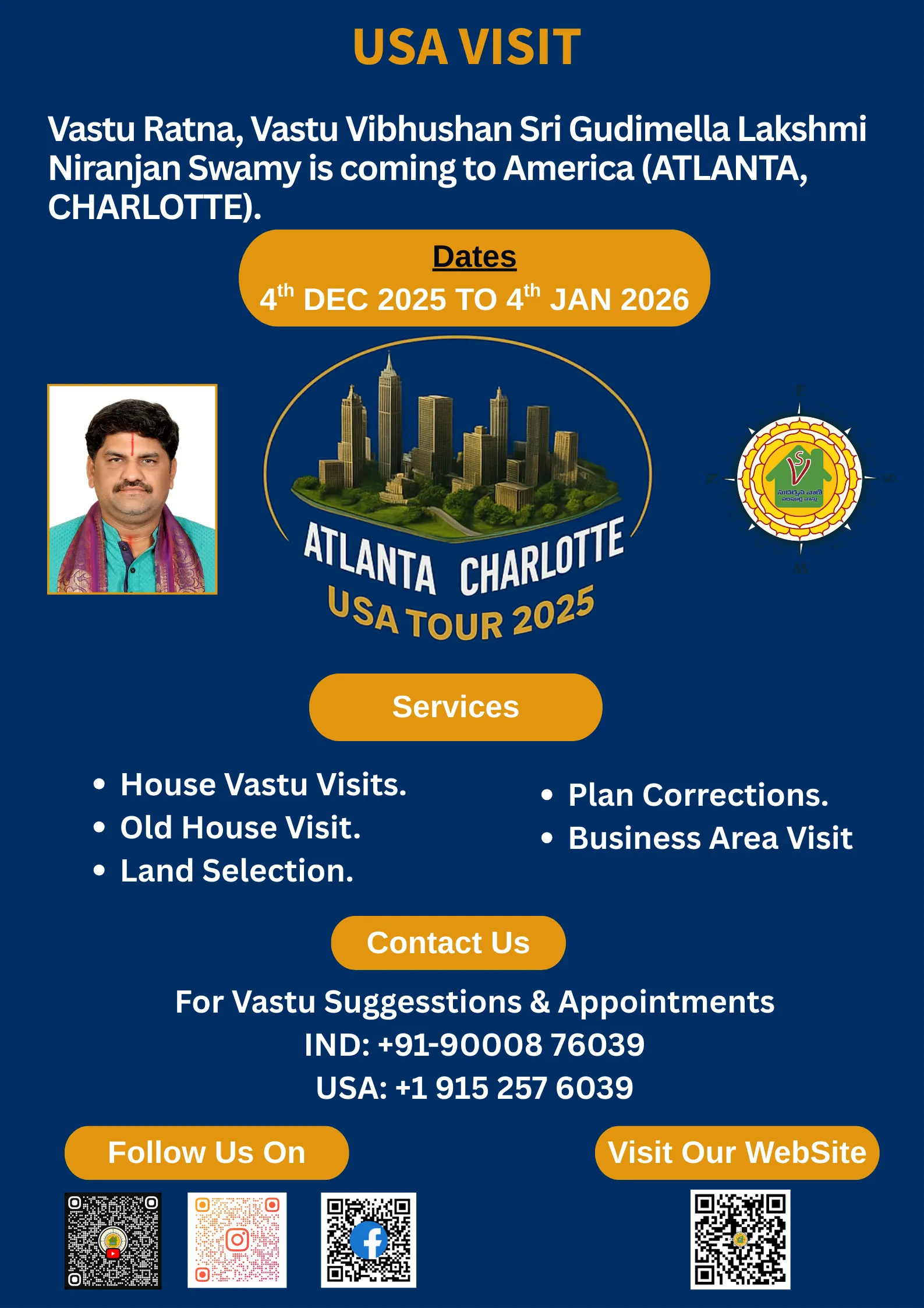 Sri.Gudimella Lakshmi Niranjan Swamy offers expert guidance on Vastu Shastra, the ancient Indian traditional system for creating harmonious living spaces with positive vibrations.